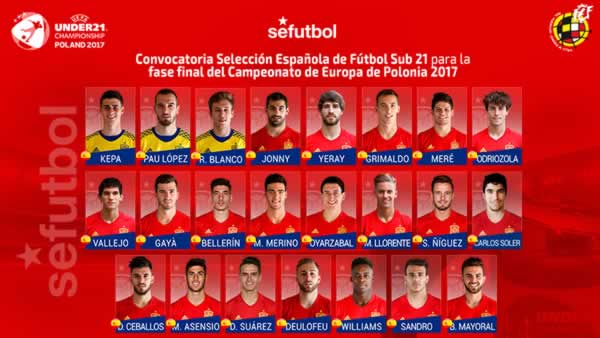 ESPAÑA: Kepa; Meré, Manquillo, Duarte, Vallejo, Saúl Ñiguez, Oliver Torres, Asensio, Castillejo ('61 Mayoral), Munir ('77 Ceballos)y Deulofeu ('85 José Rodríguez).